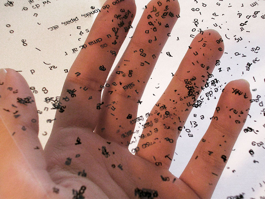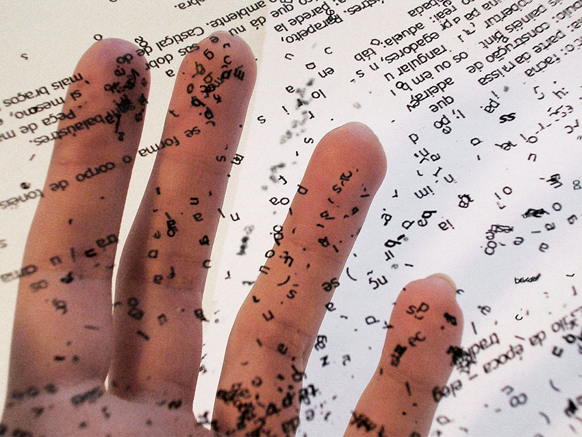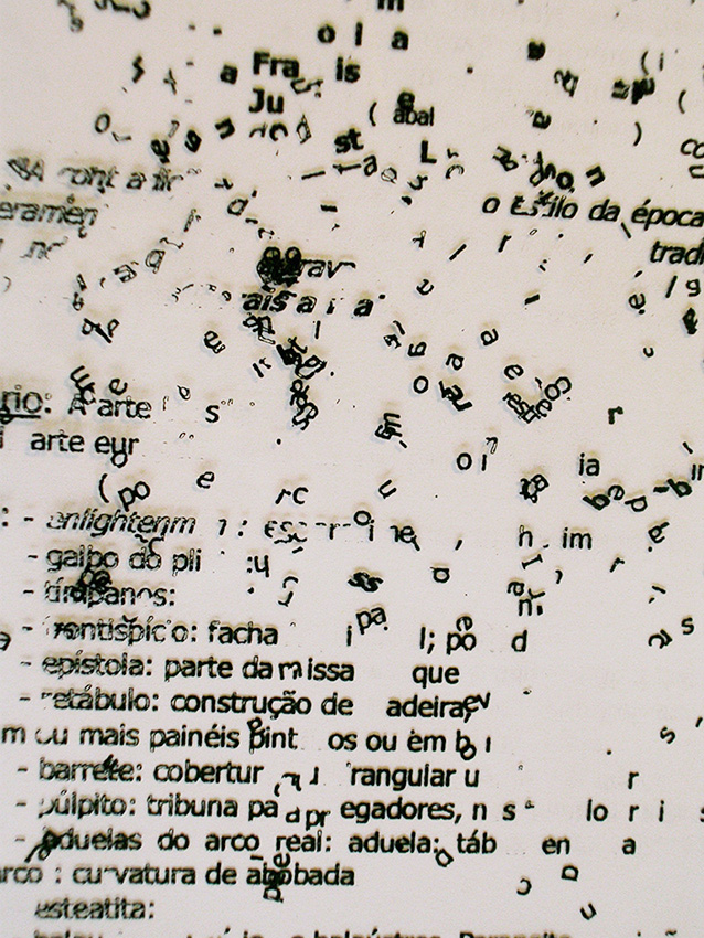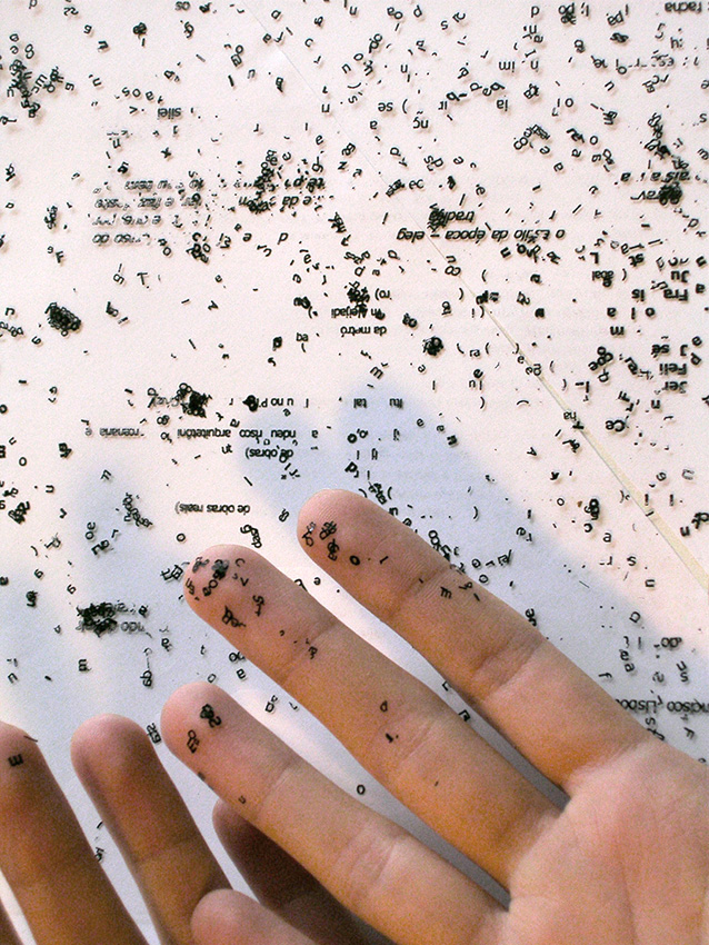 The photographic series Falling Letters registers a text falling off a transparent paper. The thickness of printed letters earns a physical body when off the original support. After a situation that happened by chance, this experience led to research related to text perceived as an image.